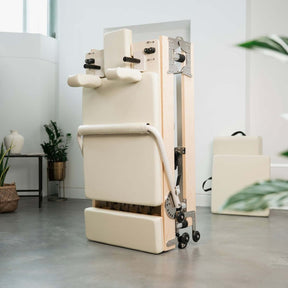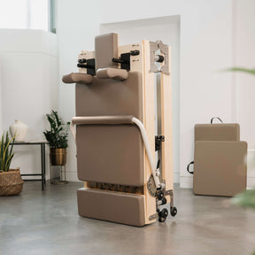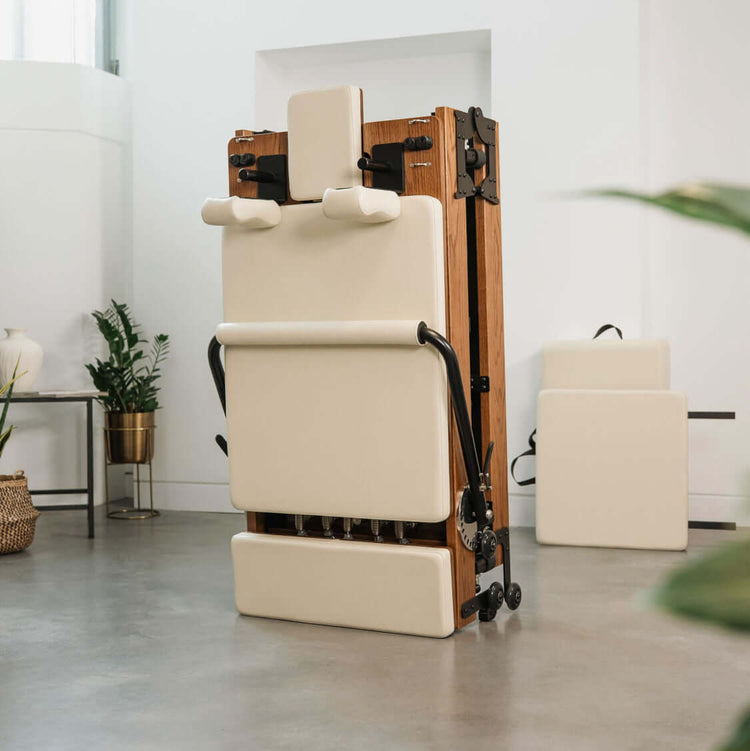 Stylish studio-quality meets uncomplicated at-home performance. Our compact, but sturdy foldable reformer bed has flex and fits into homes of any size and style.