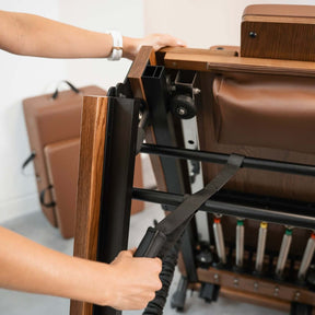 In partnership with an award-winning design company we've developed durable, studio quality folding reformer beds that maintain aesthetics but focus on performance.